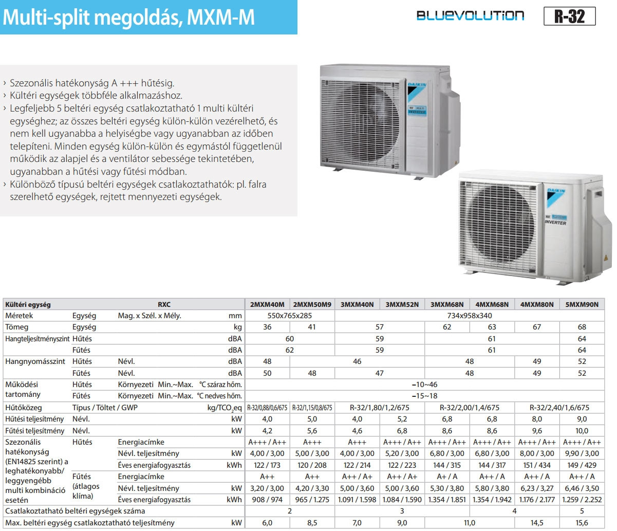 A Daikin 2MXM40A9 Multi klíma kültéri egység (max. 2 beltéri egységhez) fontos tulajdonságai: