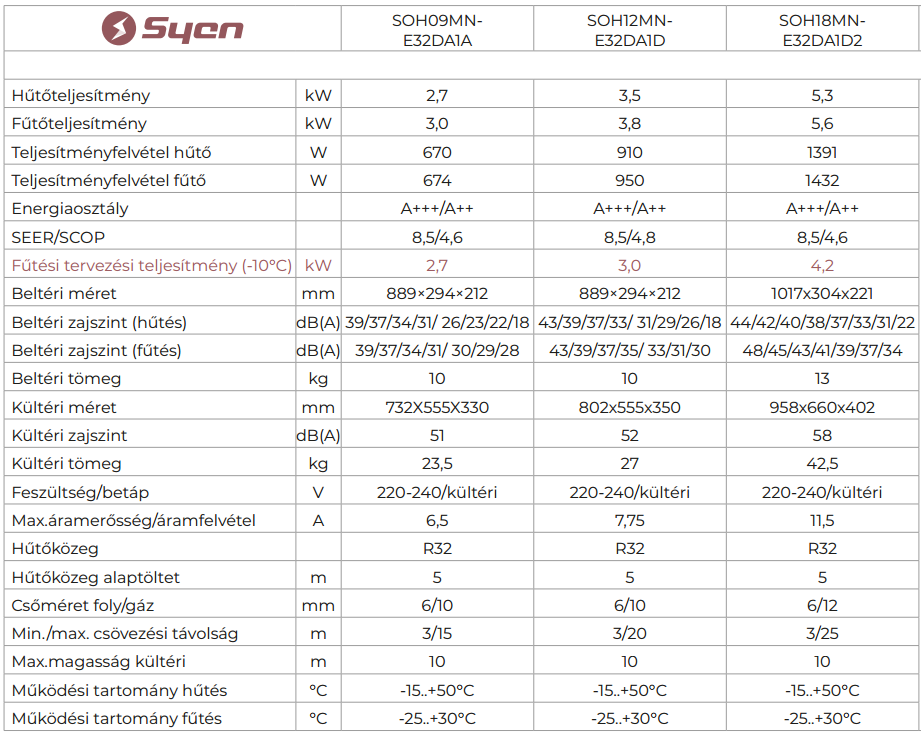 A Syen SOH12MN-E32DA1D Muse Next Inverteres Split klíma fontos tulajdonságai: